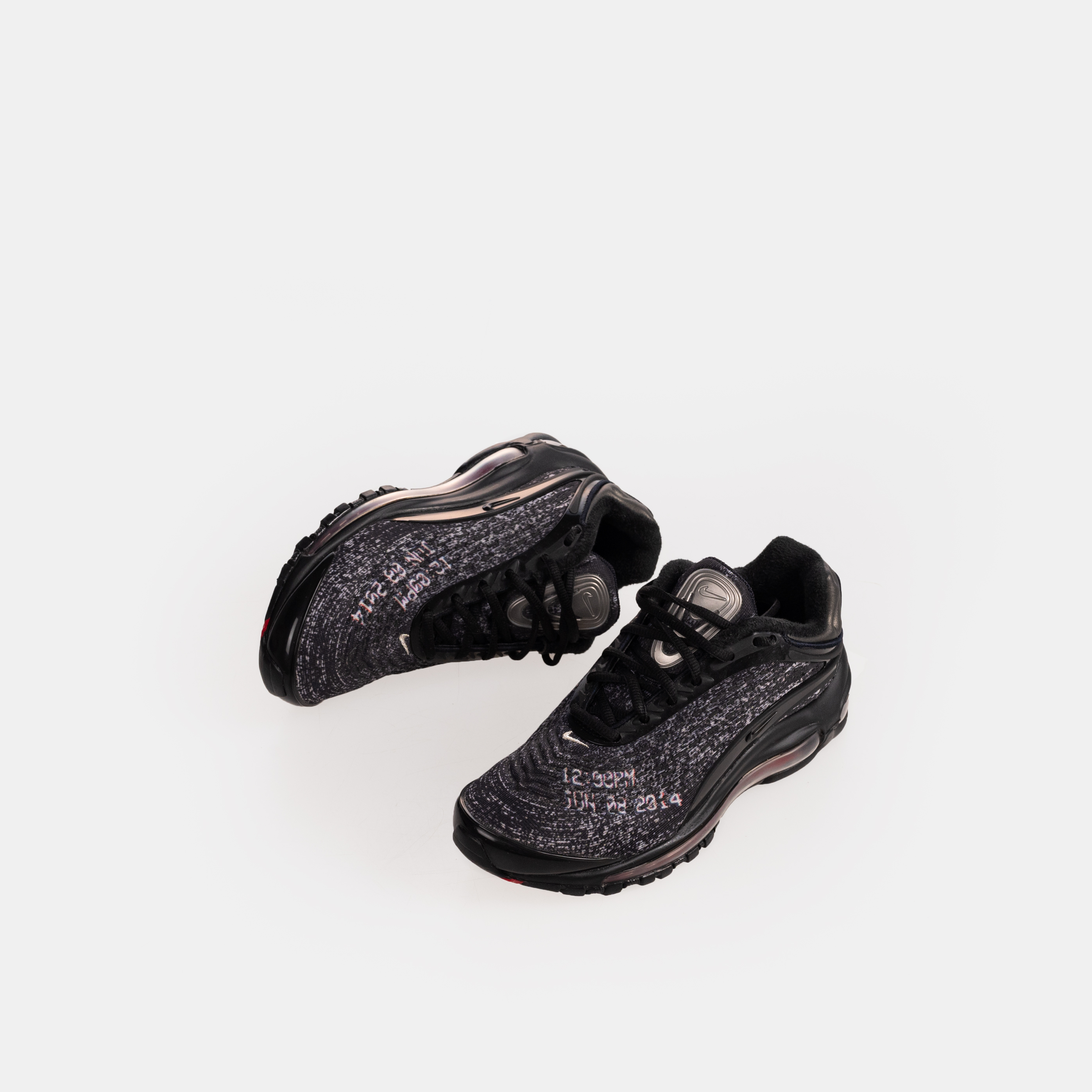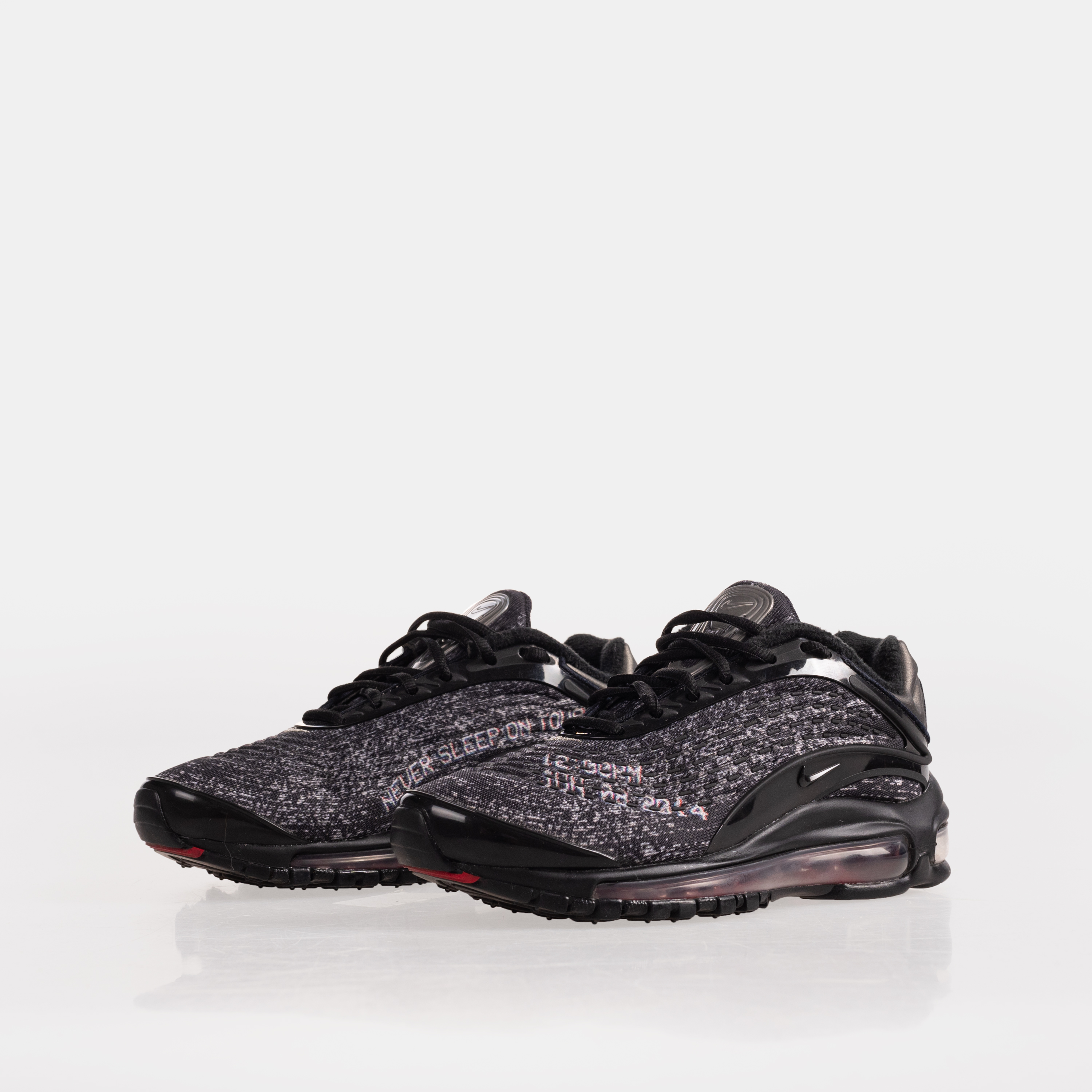 Оригинальные кроссовки Nike x Skepta. В 2014 году под лозунгом «Never sleep on tour» начался один из самых плодотворных периодов в жизни Скепты. Он выпустил трек «That’s Not Me» и с тех пор вкладывал все силы в достижение успеха, гастролируя по миру, совершенствуя умения, распространяя грайм от Лондона до Нью-Йорка в разных точках земного шара. Принт белого шума на кроссовках Air Max Deluxe SK вдохновлён клипом к данному треку.