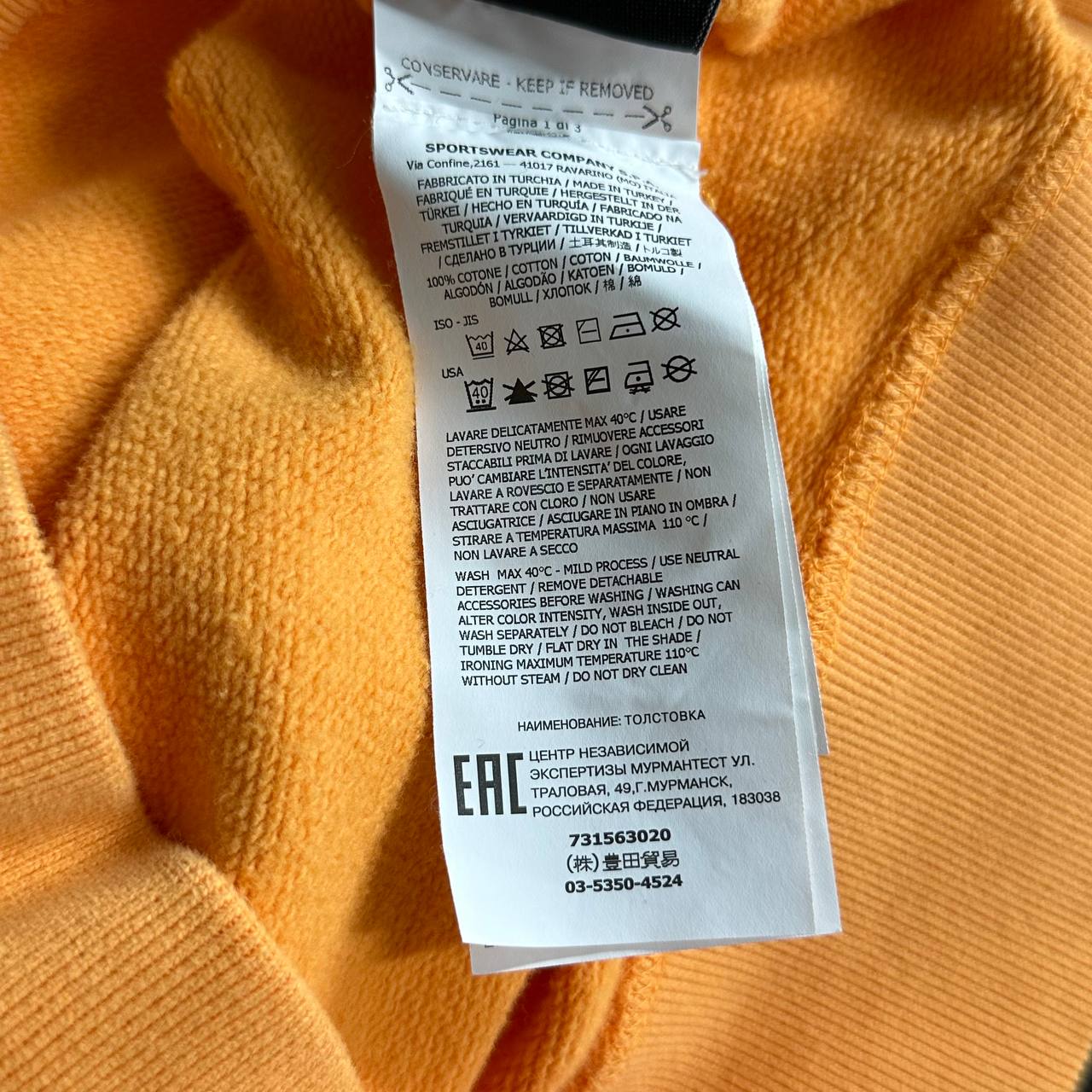 Оранжевый свитшот из осенне-зимней коллекции легко пропишется в повседневном гардеробе. К тому же в такой вещи будет комфортно: за это отвечает мягкий хлопковый трикотаж. Благодаря многослойной структуре волокон материал поддерживает эффективную циркуляцию воздуха, не перегревая кожу.